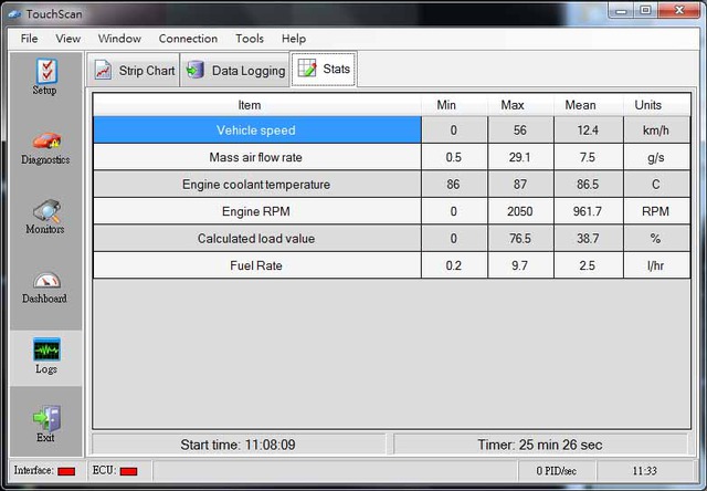 STN1110連線讀取的速度和ELM327相差很明顯, 也較ELM327穩定.